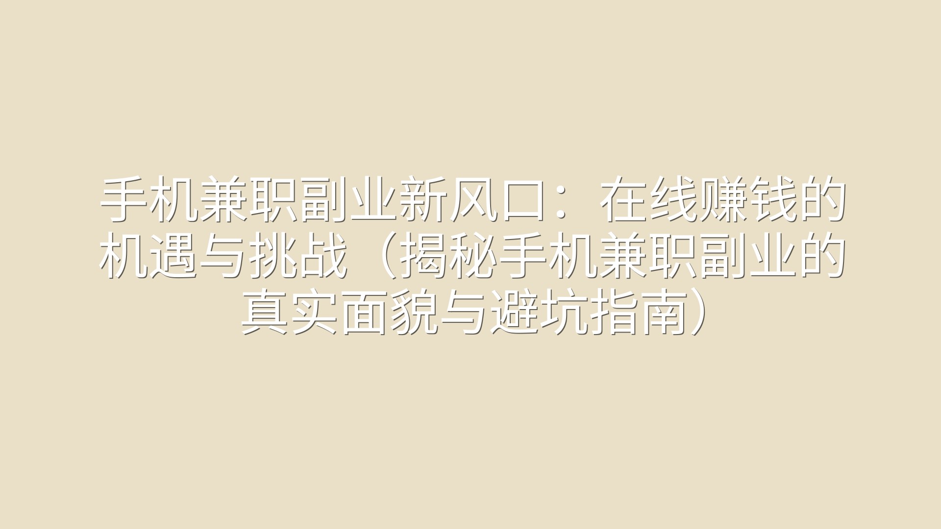 在数字化浪潮席卷全球的今天,一部智能手机已不仅仅是通讯工具,更成为了许多人探索副业可能性的“移动办公室”。“手机兼职副业在线”这一关键词的热度持续攀升,背后反映的是大众对灵活增收、时间自由和职业多元化的迫切渴望。无论是学生党、上班族,还是全职宝妈,都希望能利用碎片化时间,通过在线方式获得额外收入。然而,这片看似繁花似锦的蓝海,实则暗礁密布,充斥着诱人的“日入过千”神话与令人防不胜防的骗局。本文将深入剖析手机在线兼职副业的真实生态,为你梳理靠谱的路径,并揭示常见的陷阱,助你在安全的前提下,高效开启你的在线创收之旅。