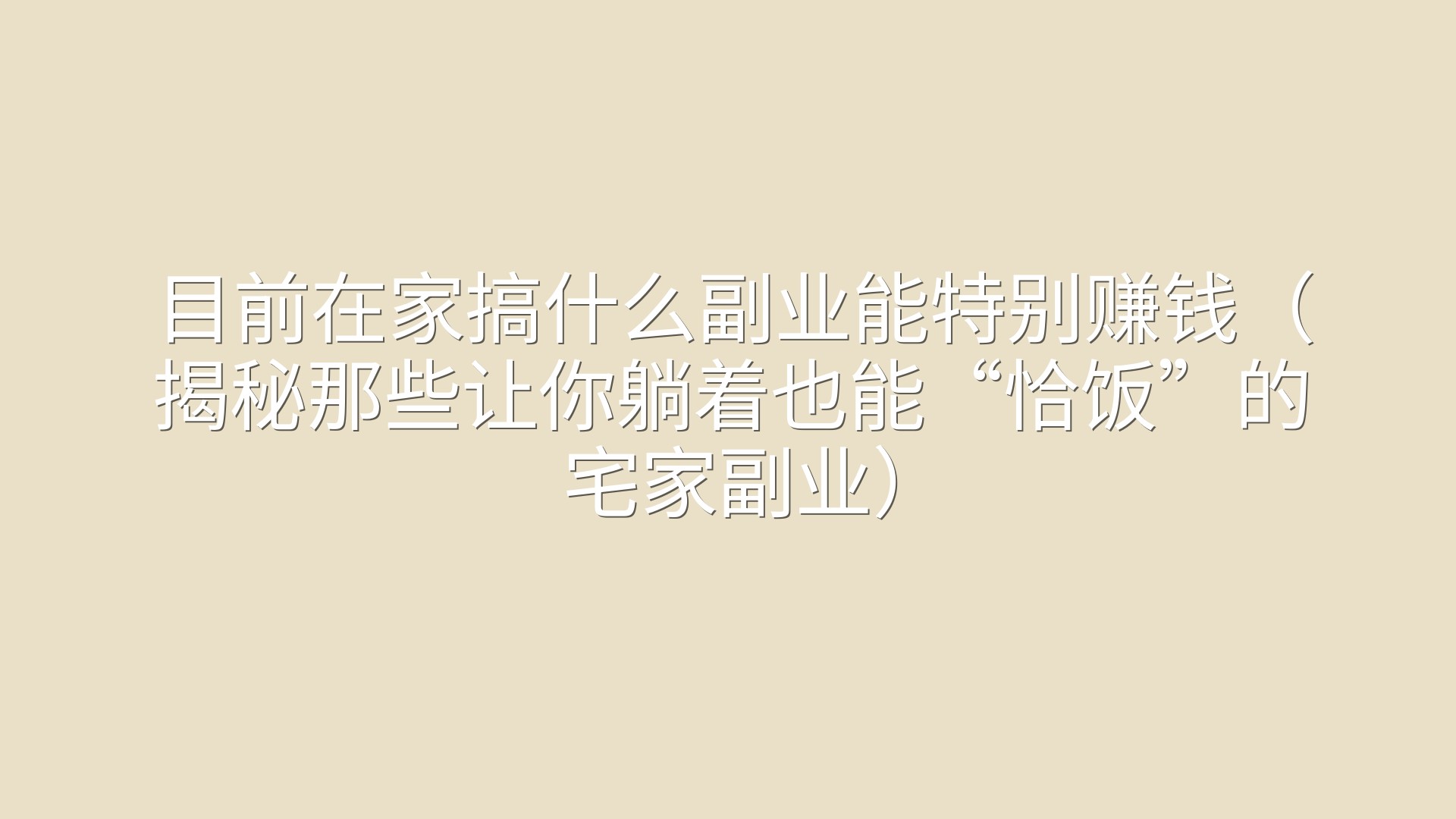 想搞副业,又不想出门?想多赚点钱,又怕被割韭菜?这大概是很多“打工人”和“宅家族”的共同心声。尤其是在当下,寻找一份靠谱、能在家操作、并且收益可观的副业,简直成了刚需。但网上的信息鱼龙混杂,有的吹得天花乱坠,有的则是深坑陷阱。今天,咱们就来扒一扒,那些真正有可能让你在家“特别赚钱”的副业方向,不谈虚的,只聊实的,帮你拨开迷雾,找到适合自己的“宅家生财之道”。