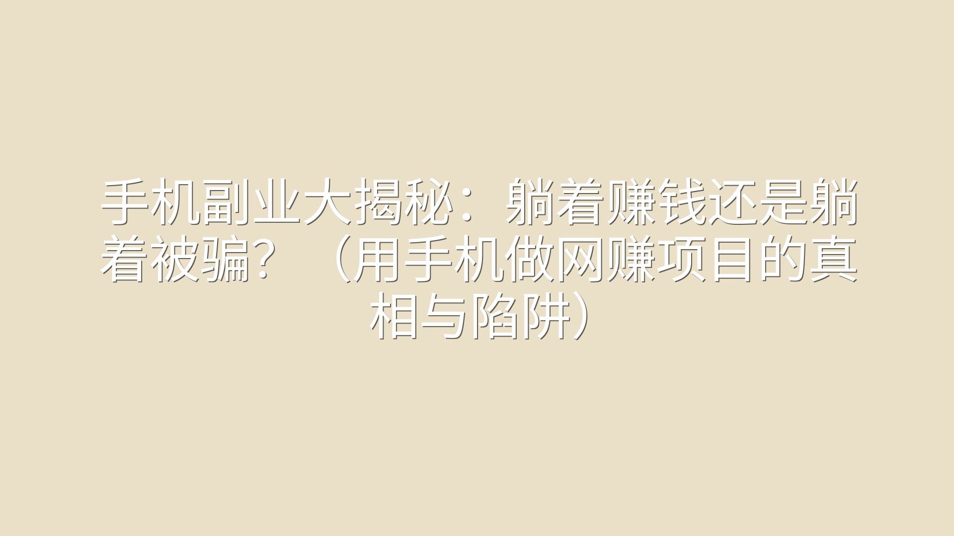 在这个“一部手机走天下”的时代,谁还没做过“躺着就把钱赚了”的美梦呢?朋友圈、短视频里,各种“用手机做网赚项目,日入几百”的广告看得人心痒痒,仿佛财富自由就差一个APP的距离。但当你兴致勃勃地点进去,却发现不是要你拉人头,就是要你先交钱,瞬间感觉智商受到了侮辱。今天,咱们就来扒一扒手机网赚这个江湖,看看哪些是靠谱的“搬砖”活儿,哪些是等着坑你的“美丽陷阱”。