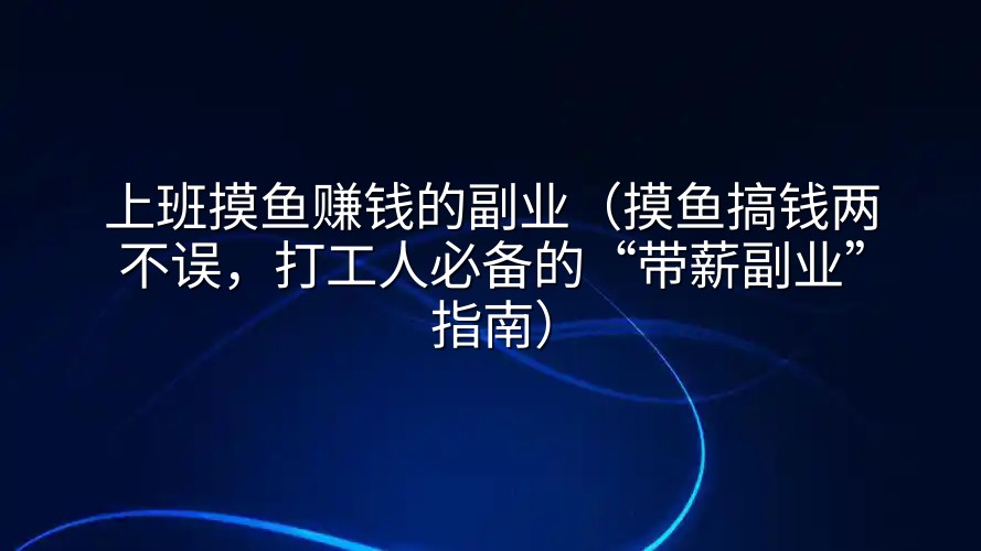 在格子间里,你是否也经历过这样的时刻:手头的工作早已做完,却要装作很忙的样子,对着屏幕发呆,或者偷偷刷着手机,内心充满了对时间的愧疚与浪费感?别慌,这可能是你开启“第二收入曲线”的绝佳信号!“上班摸鱼赚钱”已不再是都市传说,而是许多机智打工人悄悄实践的财富密码。今天,我们就来聊聊那些合法合规、低调隐秘,真正能在工作间隙操作的副业门道,让你光明正大地把“摸鱼时间”变成“创收时刻”。