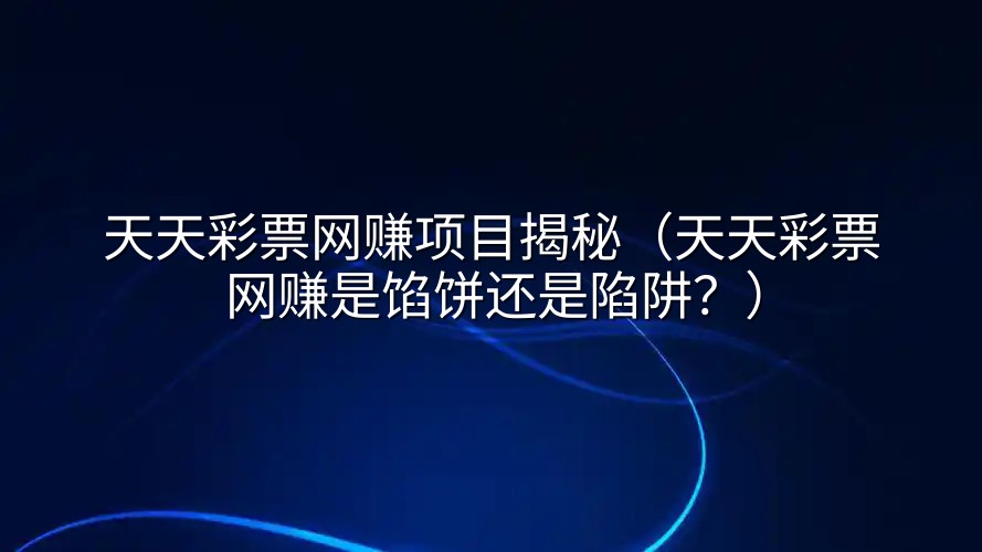 在网络上搜索“手机赚钱”、“副业兼职”,你大概率会刷到“天天彩票网赚项目”这类诱人的字眼。它们往往宣称“轻松日入几百”、“稳定收益”、“零门槛操作”,配上一些模糊的收益截图,让不少急于寻找出路的朋友心动不已。今天,咱们就来扒一扒这个“天天彩票网赚”的里里外外,看看它到底是通往财富的捷径,还是精心包装的坑。