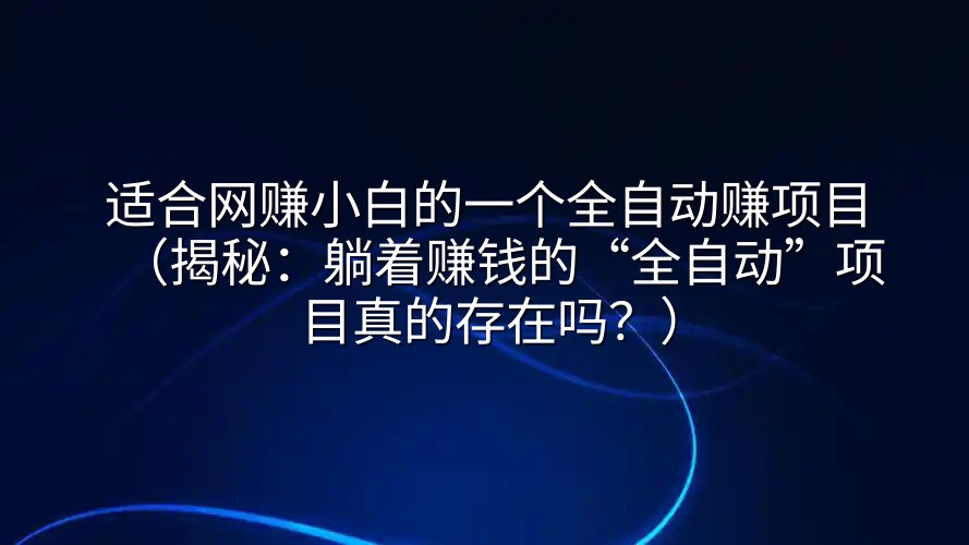 嘿,各位在网赚大海边跃跃欲试又怕被浪拍晕的小白朋友们!是不是总在深夜刷手机时,被那些“全自动挂机,日入XXX”、“解放双手,睡后收入”的广告撩得心痒痒?一边心动,一边又怀疑:天底下真有这种好事,轮得到我这个啥也不懂的小白?今天,咱们就来扒一扒这个号称“适合网赚小白”的全自动赚钱项目,看看它到底是通往财富自由的捷径,还是又一个精心包装的坑。咱们不吹不黑,只讲大实话。