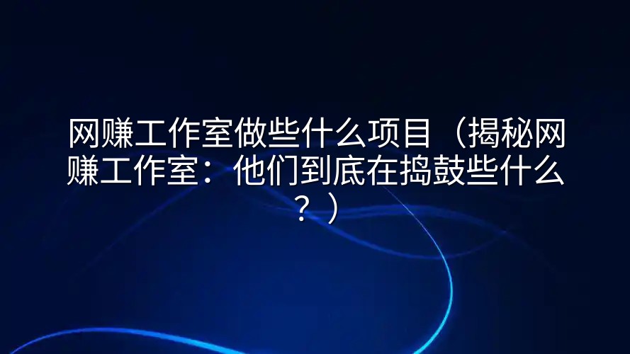 在互联网的某个隐秘角落,或者就在你家隔壁的出租屋里,可能就藏着一个“网赚工作室”。听起来是不是有点神秘,甚至带点黑客帝国的味道?别想歪了,他们可不是在搞什么非法入侵,而是在正儿八经地研究怎么从互联网上“淘金”。今天,咱们就掀开这层神秘面纱,看看这些工作室到底在忙活些什么项目,是真能日进斗金,还是仅仅在电脑前“假装很忙”。