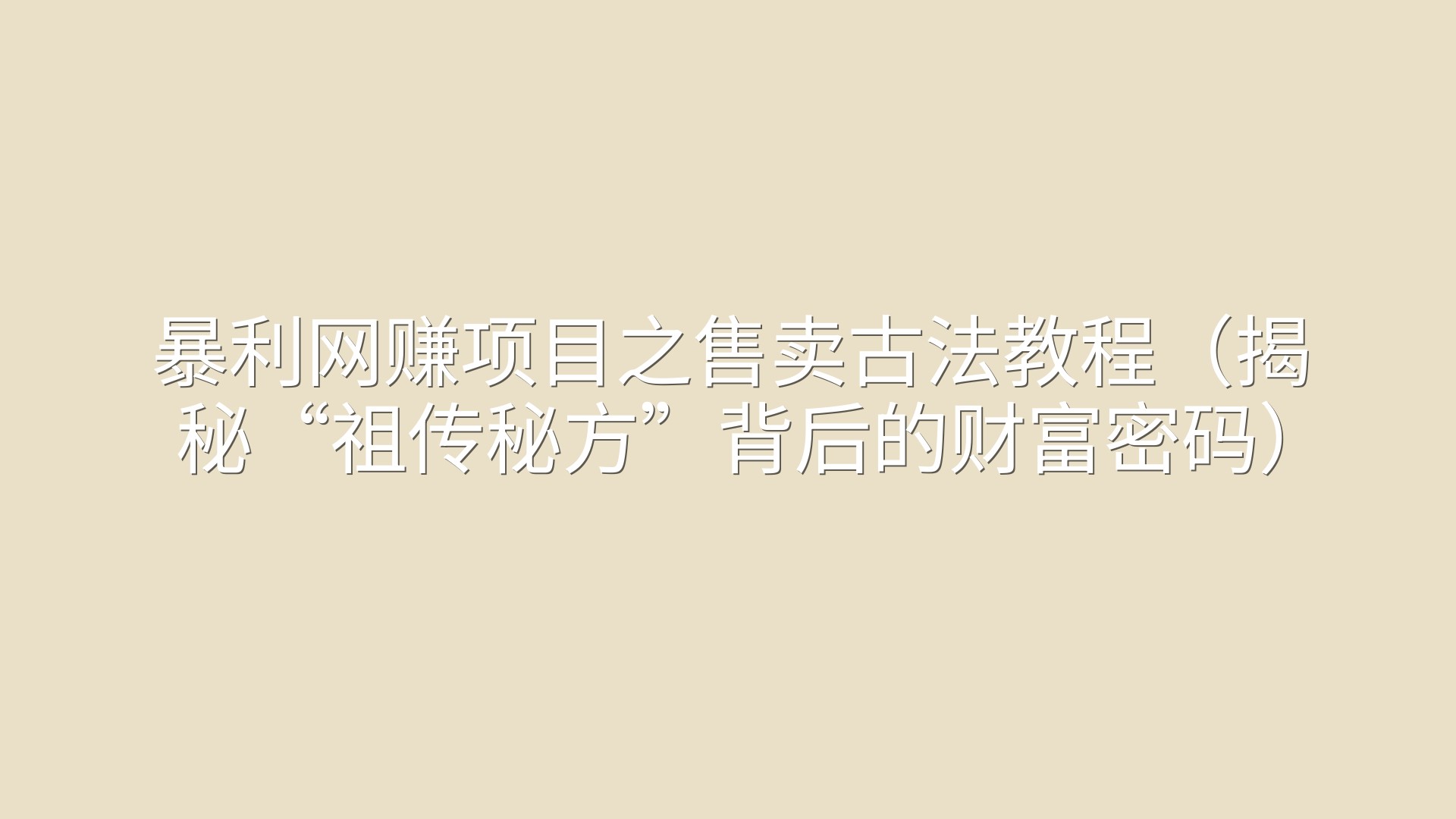 在网赚圈子里,总有一些项目披着神秘的外衣,宣称能让人“一夜暴富”。最近,“售卖古法教程”这个关键词热度不低,从“祖传酿醋秘方”到“宫廷护肤古法”,各种号称能轻松赚钱的项目层出不穷。这些教程真的能带来暴利吗?还是又一个精心包装的韭菜收割机?今天,咱们就来扒一扒这个项目的里里外外,看看它到底是金矿还是深坑。
