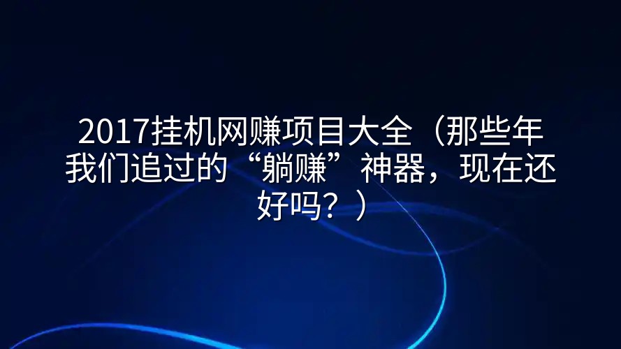 还记得2017年吗?那是个智能手机全面普及、流量资费开始下降的年代,也是“挂机网赚”概念最疯狂的时期。无数文章和论坛里,充斥着“手机放一边,自动赚美金”、“电脑开机即赚钱,月入过万不是梦”的诱人广告,仿佛一台台电子设备就是会下金蛋的母鸡。今天,我们就来一场“考古”之旅,盘点一下2017年那些风靡一时的挂机网赚项目,顺便用现在的眼光看看,它们到底是时代的眼泪,还是披着羊皮的狼。