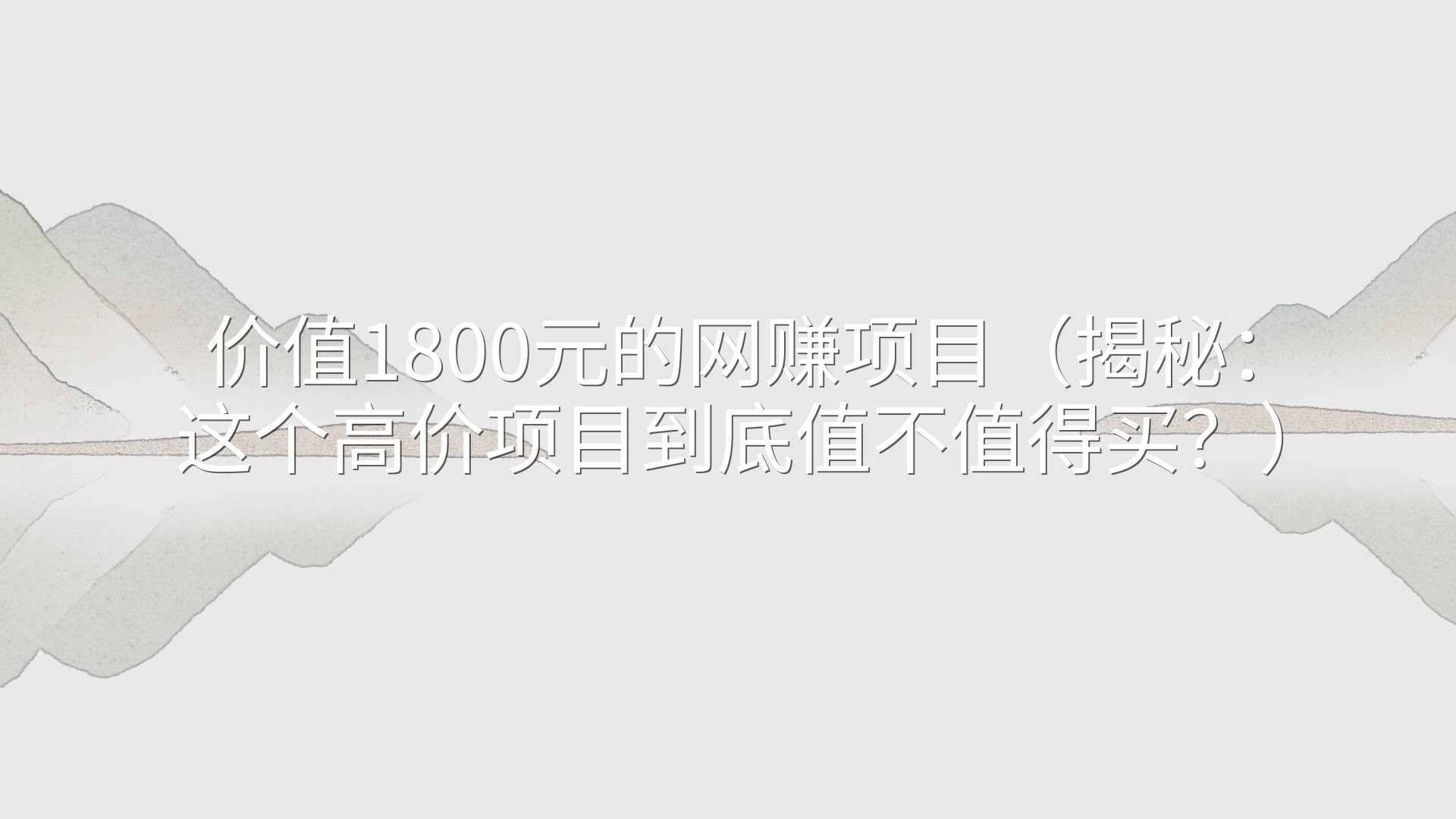 在网赚圈子里,你肯定见过这样的广告:“内部渠道,价值1800元的暴利项目,日入XXX,限时分享!” 价格标签一贴,神秘感拉满,让人心里直痒痒,一边怀疑是割韭菜,一边又怕错过一个亿。今天,咱们就来扒一扒这类“标价1800元的网赚项目”的底裤,看看它到底是通往财富自由的捷径,还是精心包装的智商税。本文将带你理性分析,并分享如何辨别和寻找真正有价值的网络赚钱机会。