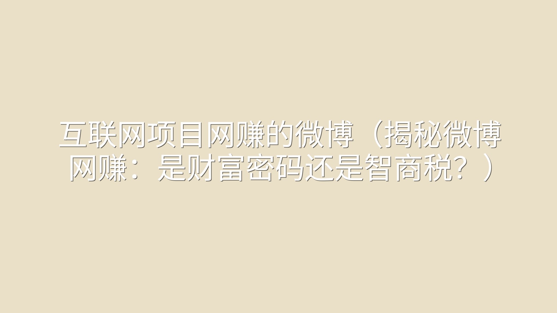 在微博这个信息爆炸的广场上,你肯定刷到过这样的内容:“一部手机,每天两小时,月入过万不是梦”、“揭秘一个冷门互联网项目,操作简单,适合小白”。这些打着“互联网项目”、“网赚”旗号的微博,像极了路边散发着诱人香味的“致富快餐”,让人既心动又怀疑。今天,咱们就来扒一扒这些“互联网项目网赚的微博”到底藏着什么玄机,是通往财务自由的捷径,还是精心包装的陷阱?
