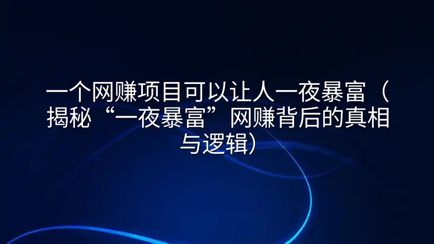 在互联网的各个角落,尤其是在某些隐秘的社群和夸张的广告里,“一个网赚项目可以让人一夜暴富”的传说如同都市怪谈般流传。它撩拨着无数渴望快速翻身者的神经,让人在“万一实现了呢”的幻想与“这肯定是骗局”的理智之间反复横跳。今天,咱们就来扒一扒这个诱人命题的里里外外,不灌鸡汤,只摆事实,看看所谓“一夜暴富”的网赚,到底是天降馅饼,还是精心设计的陷阱。