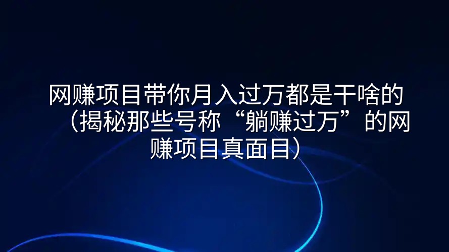 “轻松操作,手机点点,月入过万不是梦!”——这样的广告语是不是看着眼熟?在各大社交平台和短视频里,总有一些“大神”晒着高额收益图,宣称带你玩转网赚,快速实现财务自由。心动之余,你心里是不是也打满了问号:这些项目到底是干啥的?是真能淘金的蓝海,还是精心包装的陷阱?今天,咱们就来扒一扒这些“月入过万”网赚项目的底裤,看看它们葫芦里到底卖的什么药。