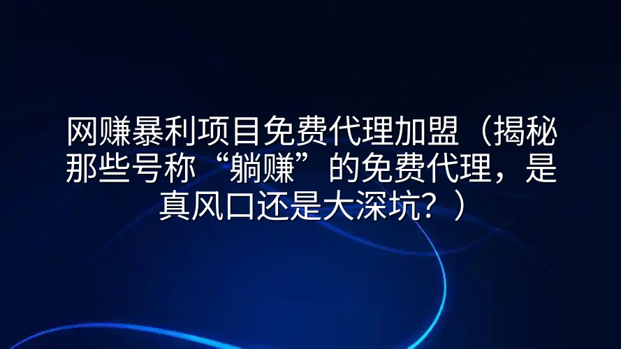 在互联网的每个角落,你总能看到一些让人心跳加速的广告:“暴利项目,日入过千”、“零成本加盟,轻松当老板”、“免费代理,月入十万不是梦”。这些词汇像魔法咒语一样,吸引着无数渴望改变现状的普通人。尤其是“免费代理加盟”,听起来简直是天上掉馅饼,不接住都对不起自己。但等等,在你热血沸腾准备大干一场之前,不妨先冷静三分钟,跟着这篇文章一起扒开这些“暴利项目”的华丽外衣,看看里面装的到底是黄金,还是一地鸡毛。