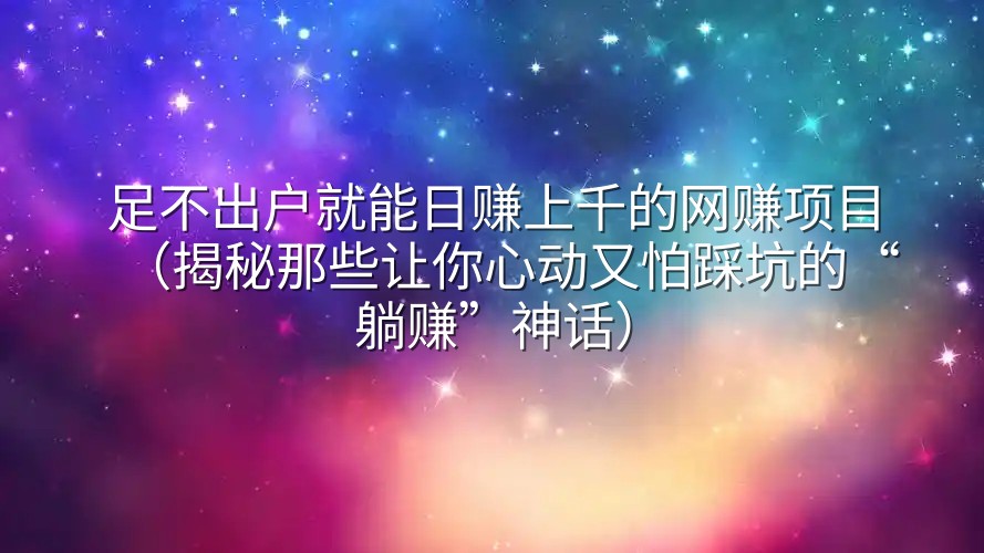 在互联网时代,“足不出户,日进斗金”的广告语就像深夜街头闪烁的霓虹灯,格外诱人。谁不想躺在沙发上,动动手指,就让钱包鼓起来呢?尤其是“日赚上千”这个关键词,精准地戳中了无数人渴望快速致富的神经。但屏幕背后的真相,究竟是通往财富自由的捷径,还是精心包装的流量陷阱?今天,咱们就一起扒开这些“网赚神话”的外衣,看看里面到底是馅饼还是铁饼。