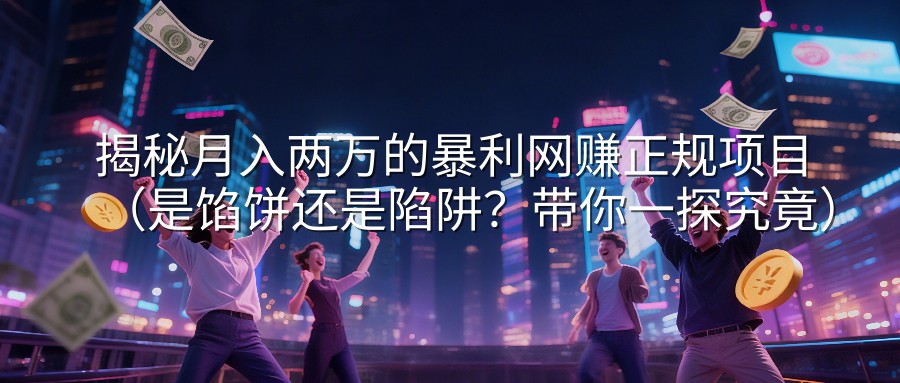 “月入两万”、“暴利”、“正规项目”,当这几个词组合在一起出现在网赚广告里时,你是不是既心动又怀疑?感觉像在电线杆上看到了“重金求子”的升级版。别急,今天咱们就来扒一扒这层神秘面纱,看看那些号称能让你躺着赚钱的项目,到底是通往财富自由的捷径,还是精心包装的韭菜收割机。本文将为你深度剖析,并筛选出真正有潜力的正规操作思路。