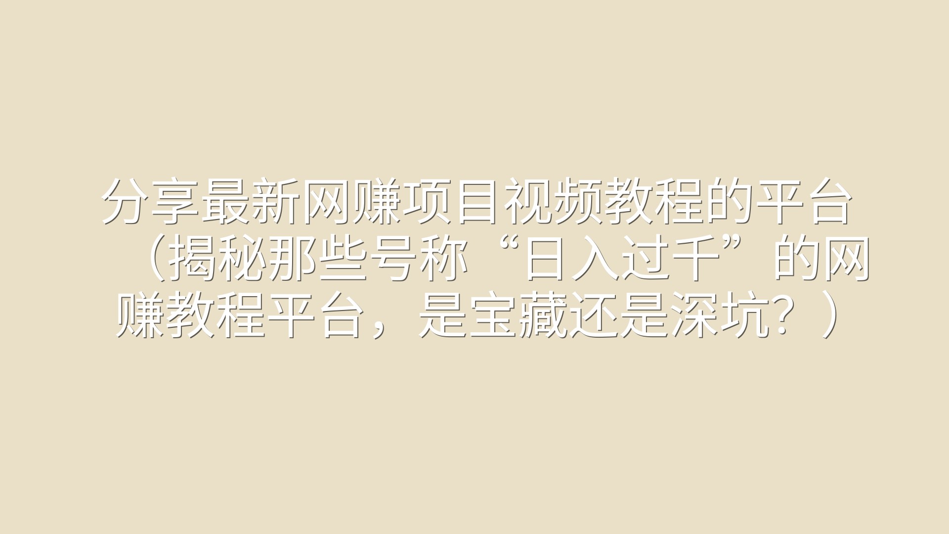 在“搞钱”成为全民话题的今天,各种“最新网赚项目”像雨后春笋般冒出来,随之而来的,是无数号称“分享最新网赚项目视频教程”的平台。它们有的藏在公众号里,有的活跃在短视频平台,还有的干脆建起了付费社群。这些平台往往打着“小白也能上手”、“保姆级教学”、“日入过千不是梦”的旗号,让人看得心痒痒。但屏幕那头,究竟是带你起飞的金手指,还是等你入瓮的收割机?今天,咱们就来扒一扒这些平台的门道,让你在掏钱或投入时间前,心里能有个谱。