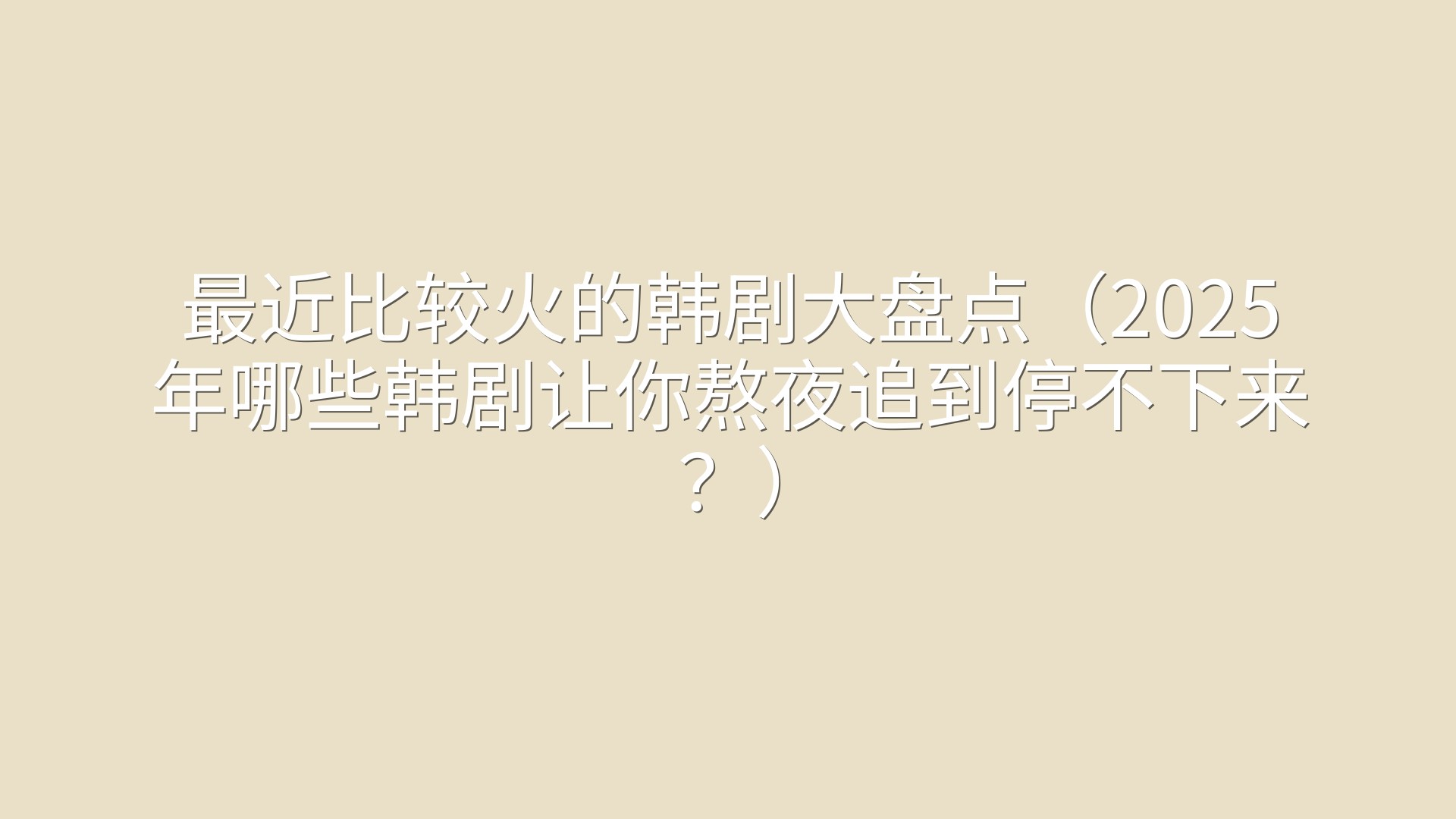 最近是不是感觉朋友圈和社交媒体又被几部韩剧刷屏了?从让人心跳加速的浪漫爱情,到烧脑反转的悬疑剧情,再到笑中带泪的家庭温情,韩剧总能精准戳中我们的追剧神经。如果你正愁“剧荒”,或者想跟上大家的讨论热点,那这篇盘点就是为你准备的!咱们不聊那些陈年老剧,就聚焦在最近几个月真正掀起话题风暴、让你忍不住一口气炫完的爆款韩剧。准备好你的小本本和零食,一起看看哪部能成为你的下一部“电子榨菜”吧!