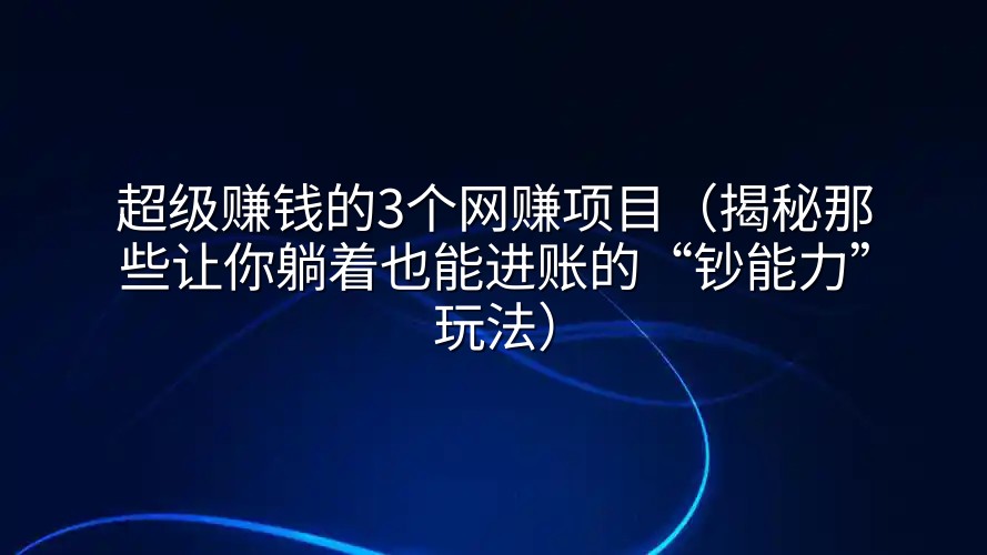 在“搞钱”成为全民口头禅的今天,谁还没在深夜刷手机时,幻想过发现一个秘密金矿,动动手指就财源滚滚?网上充斥着各种“日入过千”、“月入十万”的网赚神话,看得人心痒痒,又怕一脚踩进坑里。今天,咱不聊那些虚头巴脑的骗局,就来扒一扒三个真正有潜力、有门道、需要你付出点“聪明汗水”的网赚项目。它们不一定能让你一夜暴富,但踏踏实实做,赚点可观的外快甚至打造一份持续收入,绝对有戏!