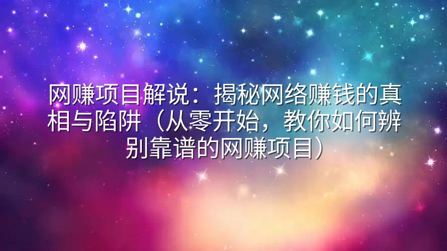 在“搞钱”成为全民话题的今天,“网赚”这个词就像一块诱人的蛋糕,散发着迷人的香气。朋友圈里时不时冒出的“轻松日入几百”、“一部手机就能赚钱”的广告,总让人心痒痒。但当你兴致勃勃地点进去,却发现要么是让你交学费的课程,要么是下载了也赚不到几毛钱的APP,瞬间感觉被泼了一盆冷水。今天,咱们就来一场接地气的“网赚项目解说”,不吹不黑,扒开那些华丽的外衣,看看里面到底是黄金还是黄泥。这篇文章的目的不是给你一个“一夜暴富”的秘籍,而是给你一副“火眼金睛”,让你在纷繁复杂的网络世界里,能分辨出哪些是机会,哪些是深坑。
