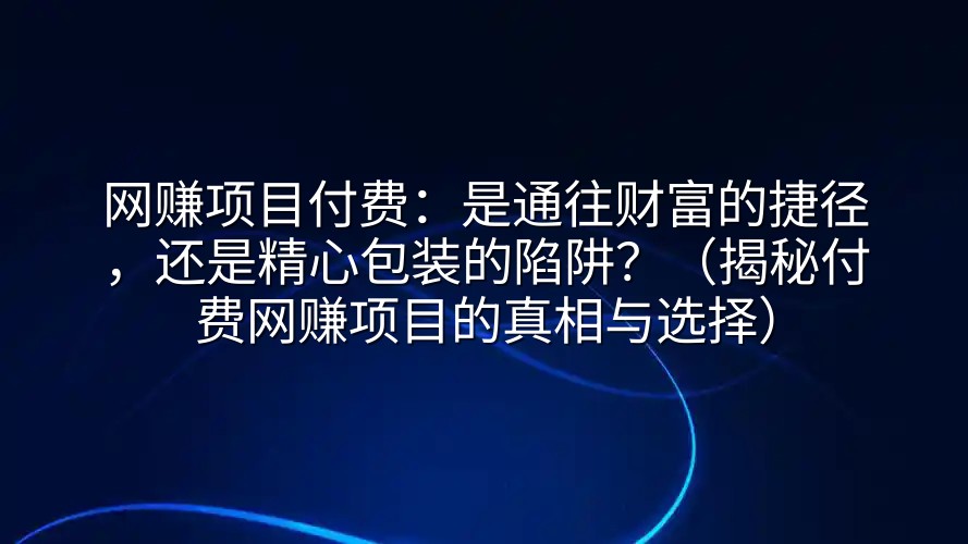 在“搞钱”成为全民话题的今天,各种宣称“日入过千”、“轻松暴富”的付费网赚项目,像雨后春笋般冒出来,疯狂撩拨着我们的神经。一边是诱人的收益截图和成功案例,一边是“付费即被割韭菜”的江湖传闻,让人既心动又心慌。今天,咱们就来扒一扒“网赚项目付费”这潭水的深浅,看看它到底是能带你起飞的金翅膀,还是只想掏空你钱包的“智商税”收割机。