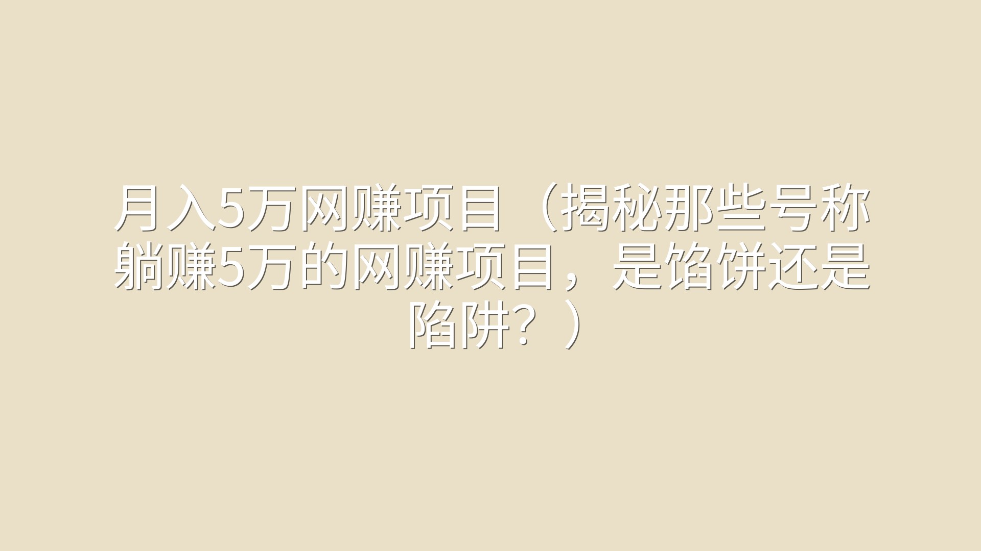 在互联网上搜索“赚钱”二字,弹出来的广告十有八九会带着“月入五万”、“轻松暴富”这样令人心跳加速的字眼。仿佛只要交个学费、下载个软件,下个月你就能辞掉工作,环游世界。这些所谓的“月入5万网赚项目”就像深夜街头闪烁的霓虹灯,迷人又充满诱惑,但走过去才发现,可能只是个灯光昏暗的苍蝇小馆。今天,咱们就来扒一扒这些项目的华丽外衣,看看里面到底藏着的是金矿,还是一地鸡毛。