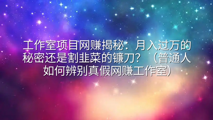 在互联网的各个角落,“工作室项目网赚”这个词就像一块散发着诱人香气的蛋糕,吸引着无数渴望副业增收、甚至梦想财务自由的普通人。朋友圈里时不时刷出“工作室带队,日赚500+”、“项目稳定,小白可操作”的广告,让人既心动又怀疑:这到底是通往财富的捷径,还是精心设计的陷阱?今天,咱们就来扒一扒“工作室项目网赚”的里里外外,看看它到底是怎么一回事,普通人又该如何擦亮眼睛,避免成为别人镰刀下的“韭菜”。