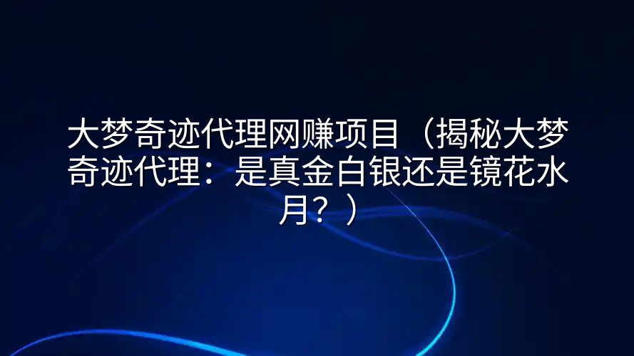 在网赚圈子里,“大梦奇迹”这个名字时不时就会冒出来,带着一股“轻松代理,月入过万”的神秘气息,撩拨着无数想搞副业、求突破的朋友们的心弦。手机一划,仿佛遍地是黄金,但弯腰去捡的时候,又怕是个精心布置的陷阱。今天,咱们就来扒一扒这个“大梦奇迹代理网赚项目”,看看它到底是带你起飞的风口,还是等着割你韭菜的镰刀。本文将为你层层剖析,从运作模式到潜在风险,让你在掏腰包之前,心里先有个明镜。