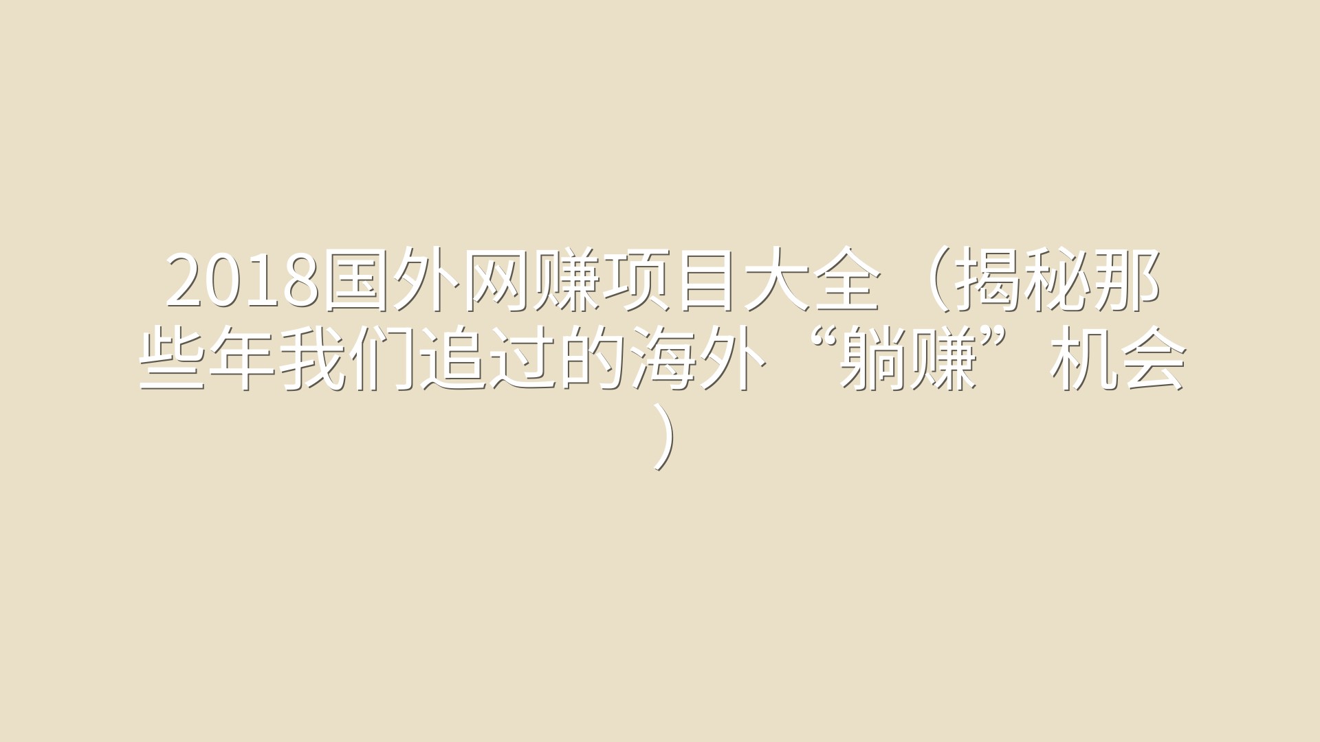 还记得2018年吗?那是个国内网赚圈子对“海外项目”充满好奇与憧憬的年代。仿佛一堵无形的墙外,遍地都是美金和欧元,随便捡个“项目”就能实现财富自由。今天,我们就来一场“考古”之旅,盘点一下2018年风靡一时的国外网赚项目大全。这些项目有的已成往事云烟,有的却进化出了新形态,其中的门道和坑,且听我慢慢道来。
