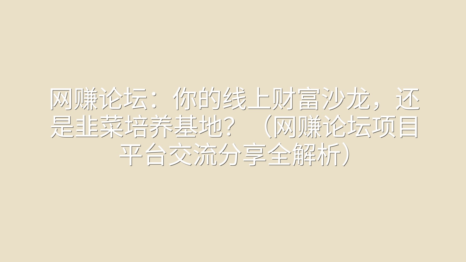 在“搞钱”成为全民信仰的今天,网赚论坛就像一个个神秘的线上集市,里面挤满了声称“日入过千”的大神、兜售“暴利项目”的导师,以及像你我一样渴望副业增收的普通人。这里既有真金白银的经验分享,也可能藏着精心设计的流量陷阱。今天,咱们就掀开网赚论坛的“门帘”,看看里面到底是在真诚地交流项目,还是在默契地表演“收割”。