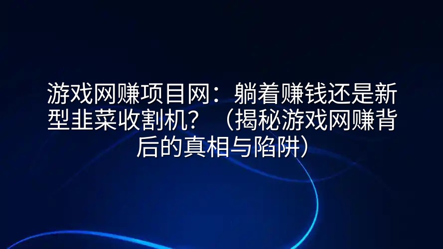 “边打游戏边赚钱”、“挂机一天轻松入账三位数”,这样的广告语是不是让你心痒痒又心里打鼓?在“游戏网赚项目网”这类平台上,各种号称零门槛、高收益的游戏赚钱项目层出不穷,仿佛遍地是黄金,就等你弯腰去捡。但天上真的会掉馅饼,还正好砸中正在刷手机的你吗?今天,咱们就一起扒开“游戏网赚”这层华丽的外衣,看看里面到底是真金白银,还是精心设计的流量迷宫和骗局陷阱。