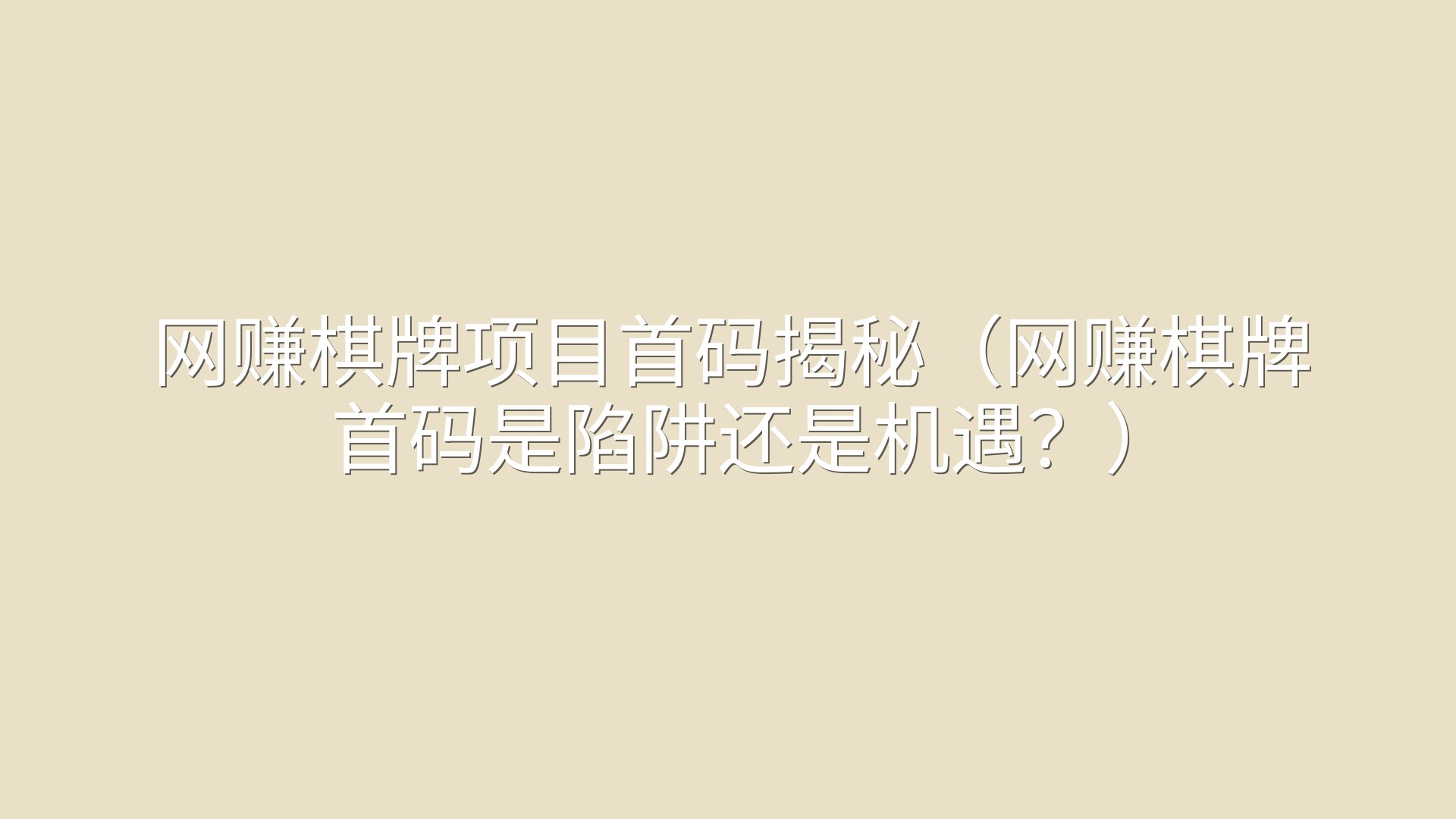 在网赚圈子里,“棋牌项目首码”这几个字总是带着一股神秘的诱惑力,仿佛一张通往财富快车道的入场券。每当有新项目带着“首码”光环出现,总能在各种社群里掀起一阵躁动,有人摩拳擦掌准备大干一场,有人则嗤之以鼻,认定这不过是换汤不换药的“割韭菜”新剧本。今天,咱们就来扒一扒这个让人又爱又恨的“网赚棋牌项目首码”,看看它到底是能让你躺赚的“金钥匙”,还是精心包装的“数字陷阱”。