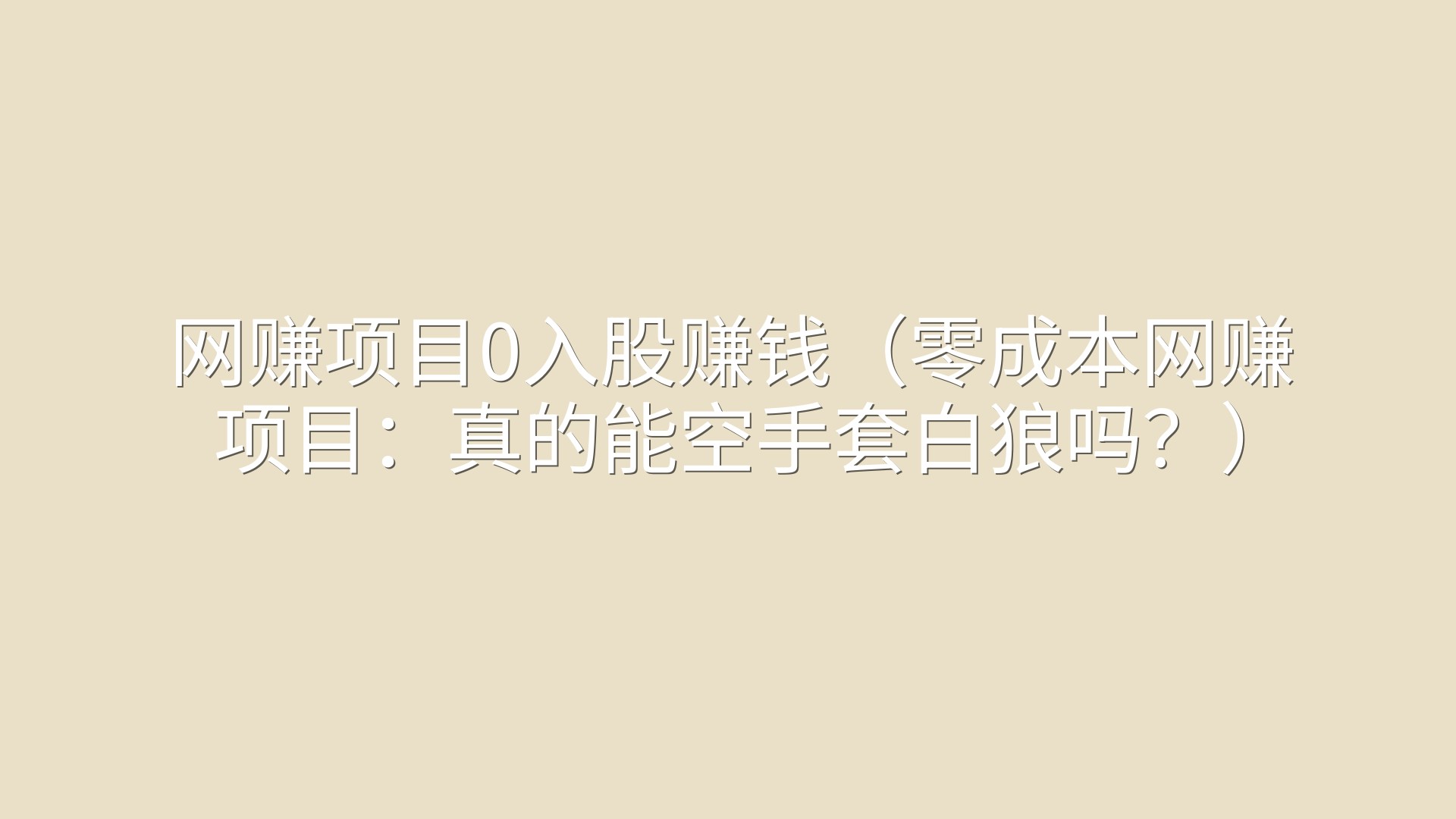 在“搞钱”成为全民话题的今天,“0入股”这三个字就像黑夜里的萤火虫,格外吸引人。谁不想不花一分钱,动动手指就能让钱包鼓起来呢?网络上充斥着各种“零成本月入过万”的传说,让人心痒难耐,但又怕一脚踩进坑里。今天,咱们就来扒一扒那些号称“0入股”的网赚项目,看看哪些是真机会,哪些是披着羊皮的“镰刀”,帮你理清思路,在搞钱的路上少走点弯路。