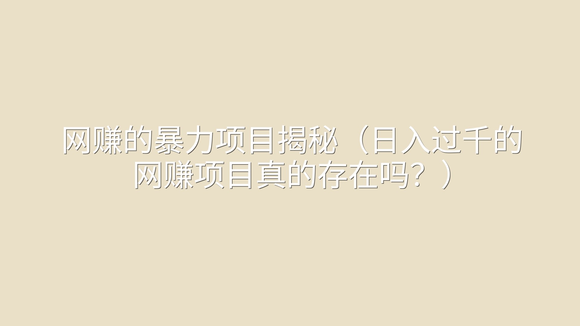 在互联网的各个角落,“网赚”这个词总是散发着诱人的金光,尤其是那些号称“暴力”、“躺赚”、“日入过千”的项目,更是让无数人心跳加速、摩拳擦掌。仿佛只要找到一个神秘的链接,点进去,财富就会像瀑布一样哗啦啦流进你的口袋。但现实真的如此美好吗?今天,咱们就来扒一扒这些“网赚暴力项目”的华丽外衣,看看里面到底是金矿还是深坑。记住,高回报的背后,往往跟着高风险甚至骗局。