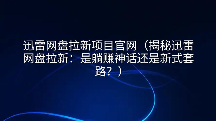 在“搞副业”成为全民话题的今天,各种“网赚”项目层出不穷,其中“拉新”因其看似简单的操作模式备受关注。最近,“迅雷网盘拉新项目”悄然走红,号称通过官网渠道推广,动动手指就能获得可观收益。这到底是迅雷官方推出的正规“羊毛”,还是又一个精心包装的流量陷阱?今天,我们就深入“官网”,扒一扒这个项目的里里外外,看看它到底值不值得你花时间。