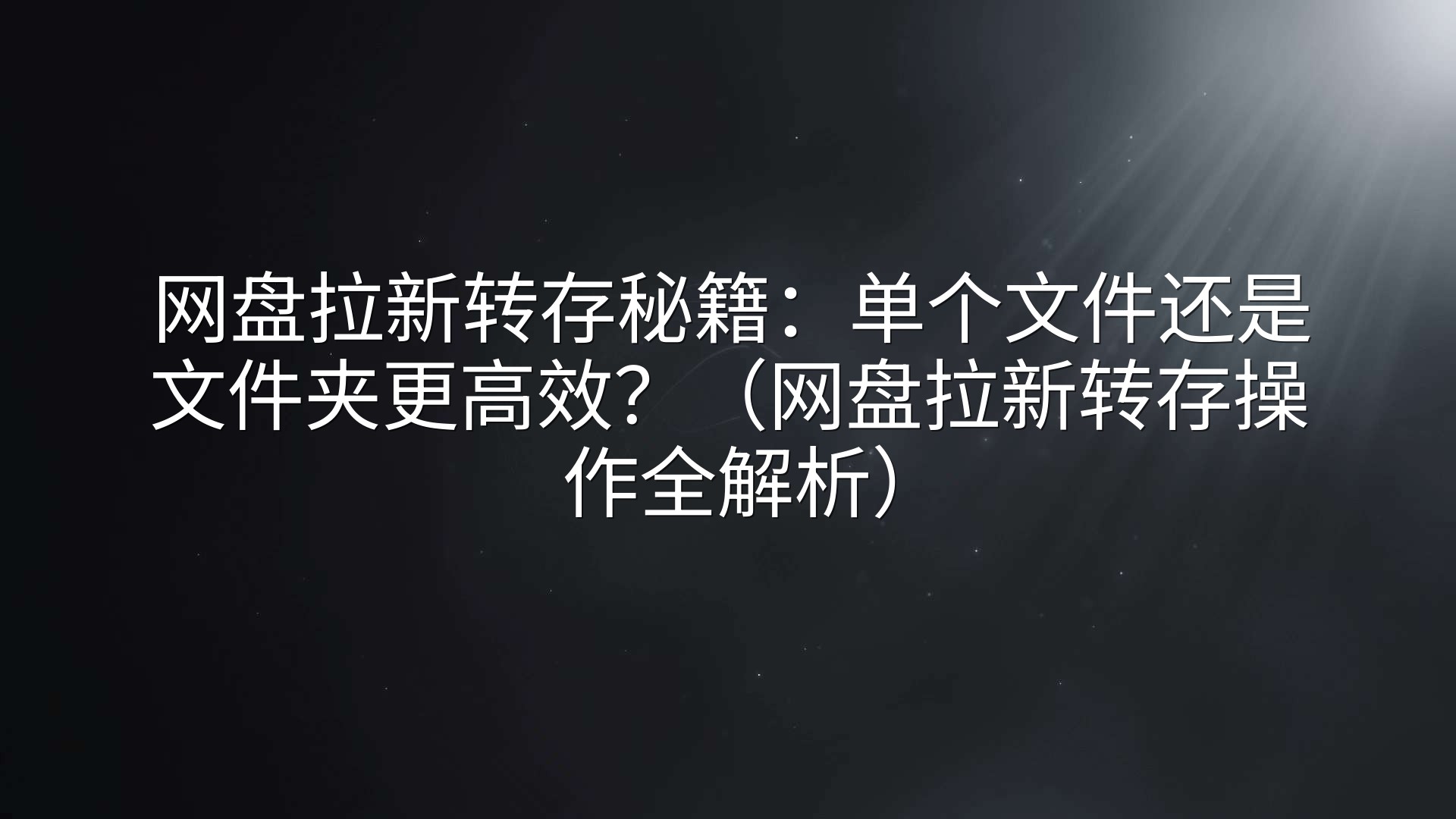 在网盘拉新这个“薅羊毛”的江湖里,流传着一个让新手纠结、老手也偶尔犯嘀咕的“终极难题”:做转存任务时,到底是转存单个文件,还是直接打包整个文件夹?这看似一个简单的操作选择,背后却可能直接影响你的拉新效率和佣金到账速度。今天,咱们就来掰开揉碎,把“转存”这个动作里里外外研究个透,让你不再为这点小事选择困难,轻松把钱赚到手。