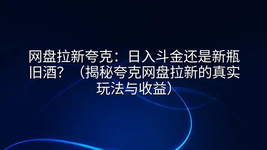 在“搞钱”成为全民话题的今天,各种网络兼职项目层出不穷,其中“网盘拉新”因其看似低门槛、高回报的特性,吸引了不少目光。而夸克网盘,作为阿里旗下的一款产品,其拉新推广活动更是被一些人渲染成“躺赚神器”。今天,咱们就来扒一扒“网盘拉新夸克”这回事,看看它到底是普通人触手可及的副业机会,还是又一个精心包装的流量陷阱。