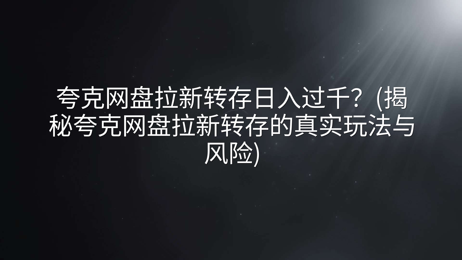 最近,你的朋友圈、微信群或者短视频平台,是不是总刷到一些“夸克网盘拉新转存,轻松日入几百上千”的广告?画面里不是晒着诱人的收益截图,就是教你如何“动动手指”把钱赚。这阵风刮得挺猛,让不少想搞点副业的朋友心里直痒痒。但天上真会掉馅饼,还正好砸你碗里吗?今天,咱们就来扒一扒这个所谓的“夸克网盘拉新转存”项目,看看它到底是致富新捷径,还是又一个精心包装的“坑”。