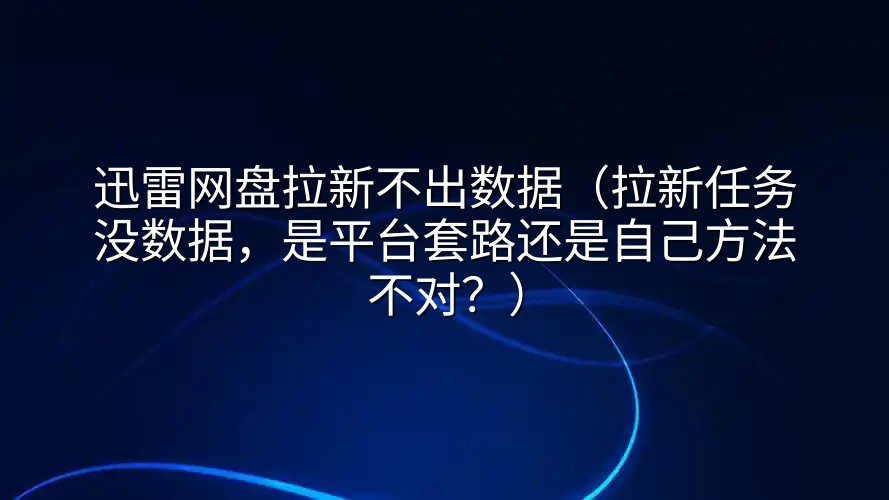 最近在网赚圈里,不少朋友都在嘀咕一个事儿:说好的迅雷网盘拉新赚钱,怎么折腾半天后台数据纹丝不动,像个“僵尸”一样?看着别人晒的收益截图心痒痒,轮到自己操作却总是“一顿操作猛如虎,一看收益两毛五”,甚至零蛋收场。这到底是平台的隐藏套路太深,还是咱们的打开方式压根就不对?今天,咱们就来扒一扒这“不出数据”背后的门道,帮你把死水般的后台给盘活了。