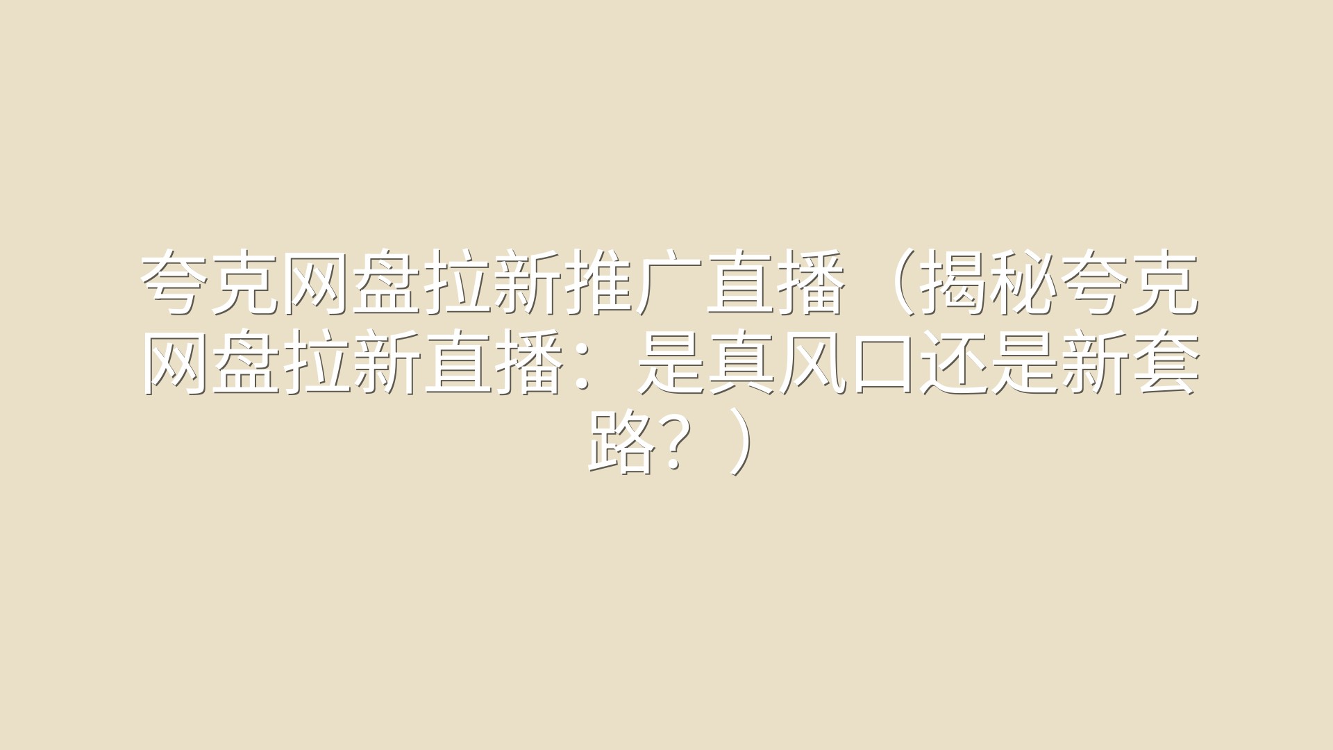 最近,你的朋友圈、短视频平台是不是也被各种“夸克网盘拉新推广直播”刷屏了?主播们晒着诱人的收益截图,喊着“轻松日入几百”、“一部手机就能干”,看得人心里直痒痒。这到底是普通人触手可及的副业新风口,还是又一个精心包装的流量陷阱?今天,咱们就扒开这层热闹的外衣,看看夸克网盘拉新直播到底是怎么一回事,普通人能不能玩得转,又该怎么避坑。