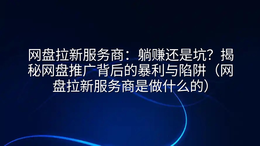 最近是不是总在朋友圈、各种兼职群里看到“网盘拉新,日入过千”、“零成本,动动手指就赚钱”这类让人心跳加速的广告?仿佛一夜之间,人人都成了“网盘拉新服务商”,宣称能带你走上财富自由之路。这到底是互联网时代的新风口,还是又一个精心包装的韭菜收割机?今天,咱们就扒开“网盘拉新服务商”这层神秘面纱,看看里面到底是金矿还是深坑。