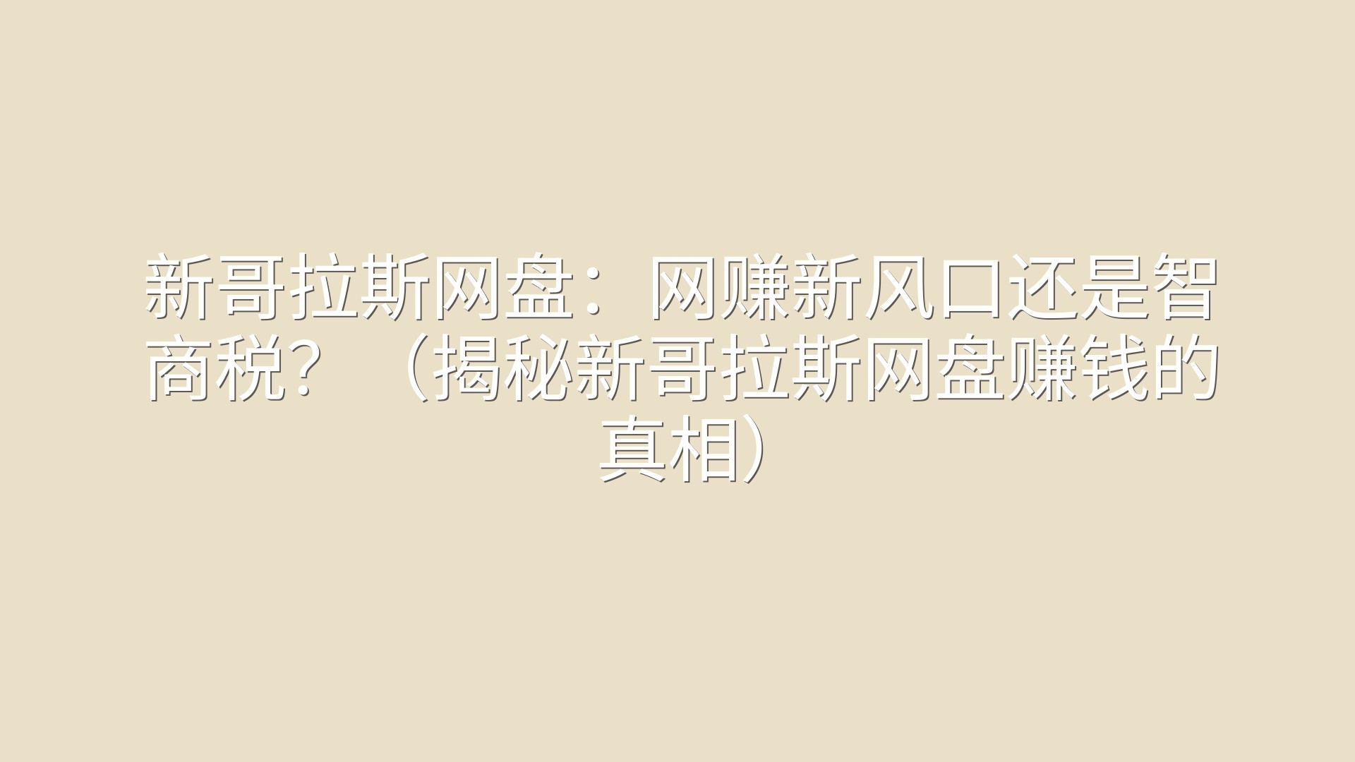 最近,一个名叫“新哥拉斯网盘”的词条在各大兼职、网赚社群里悄然走红。宣传语一个比一个诱人:“躺赚”、“被动收入”、“简单操作日入百元”,看得人心痒痒。仿佛只要注册一下,钞票就能自动飞进你的口袋。但天上真会掉馅饼,还正好砸中你吗?今天,咱们就来扒一扒这个“新哥拉斯网盘”的底裤,看看它到底是普通人逆袭的“数字矿场”,还是精心包装的“流量陷阱”。