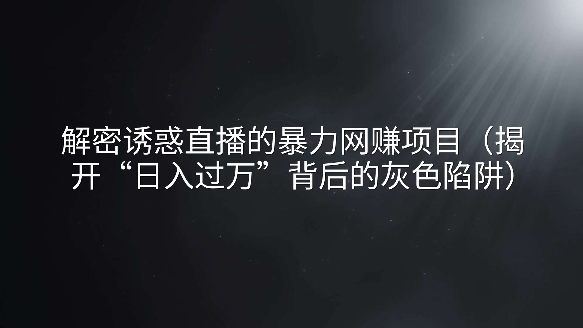 在互联网的隐秘角落,总流传着一些听起来“简单、粗暴、来钱快”的暴富神话。“诱惑直播”便是其中之一,它被某些人包装成“暴力网赚项目”,声称只需一部手机,无需露脸,就能轻松日入斗金。这种充满诱惑力的说辞,像一块裹着蜜糖的毒药,吸引着无数渴望快速翻身的人。今天,我们就来扒一扒这个所谓“项目”的底裤,看看它到底是财富密码,还是法律与道德的深渊。