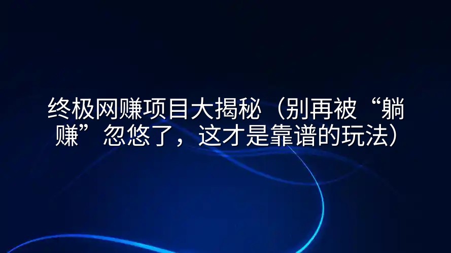 你是不是也经常在网上刷到“终极网赚项目,日入过万,轻松躺赢”这样的广告?点进去一看,不是让你交学费,就是让你拉人头。今天,咱们就来扒一扒“终极网赚项目”这个听起来就让人热血沸腾的词儿背后,到底藏着什么猫腻,以及,真正靠谱的、适合普通人的网络赚钱路子究竟长啥样。别再被那些金光闪闪的标题骗了,脚踏实地,才能挖到真金。