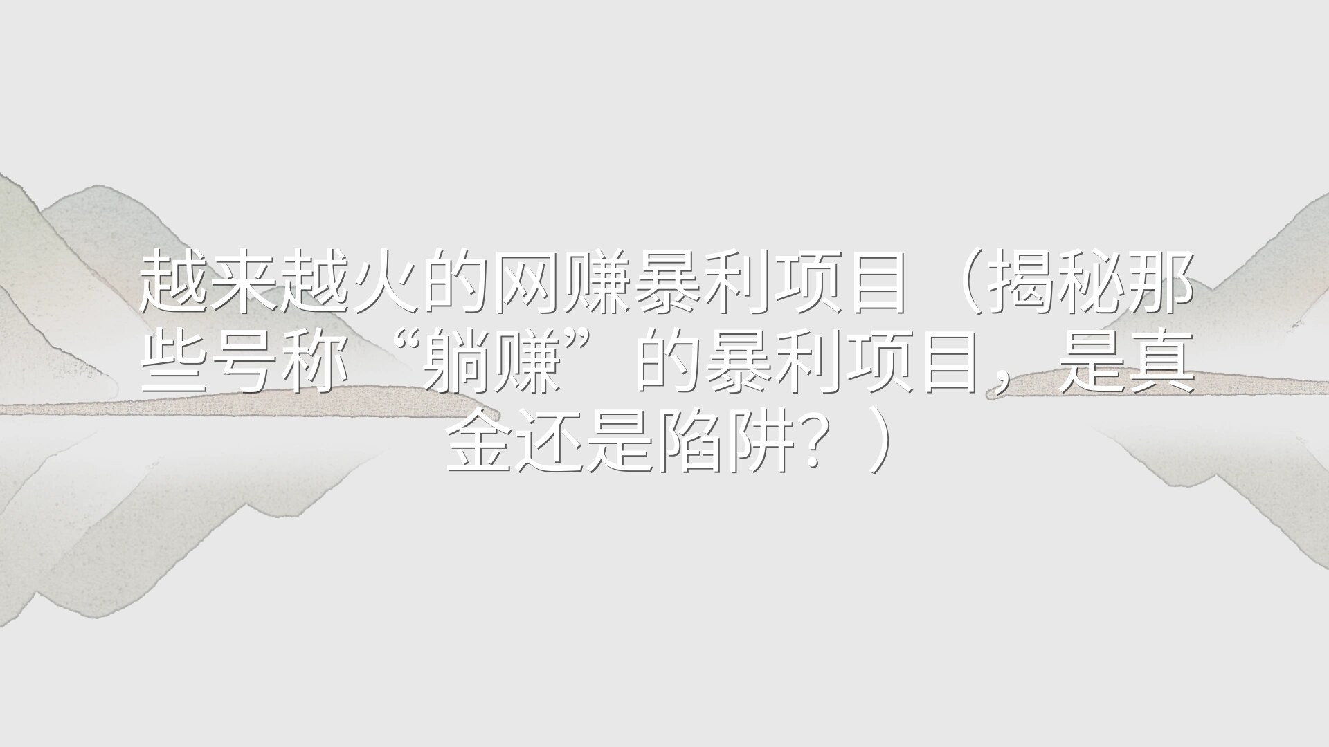 最近,你是不是也经常在短视频、朋友圈或者某个神秘的社群里,刷到“日入过千”、“月入十万不是梦”的网赚项目广告?它们披着“暴利”、“蓝海”、“零门槛”的外衣,像极了互联网上的“野生印钞机”,撩拨着每一个想搞副业、求突破的躁动之心。这些越来越火的网赚暴利项目,到底是通往财富自由的捷径,还是精心包装的韭菜收割机?今天,咱们就扒开表象,看看里面到底是真金白银,还是一地鸡毛。