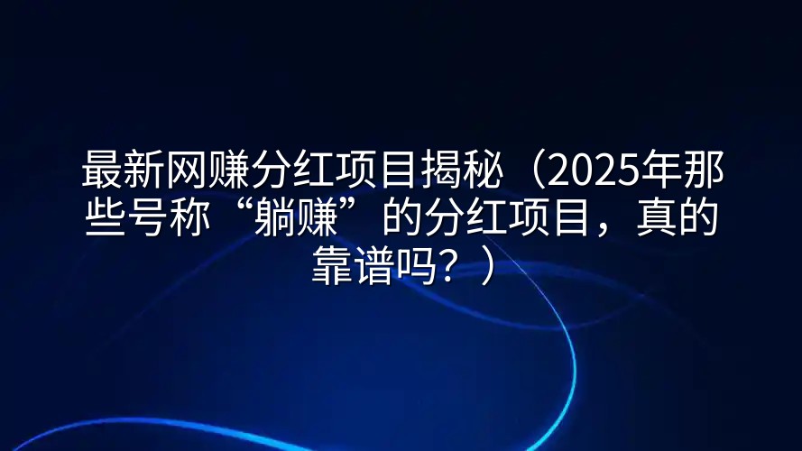 在“搞钱”成为全民话题的今天,各种“最新网赚分红项目”像雨后春笋般冒出来,宣传语一个比一个诱人:“每天点点广告,月底坐等分红”、“投资小,回报高,管道式被动收入”。这些项目往往披着区块链、共享经济、电商返利等时髦外衣,让人看得心痒痒。但屏幕背后,究竟是通往财富自由的捷径,还是精心包装的陷阱?今天,咱们就来扒一扒这些“分红项目”的里里外外,帮你擦亮眼睛,看清本质。