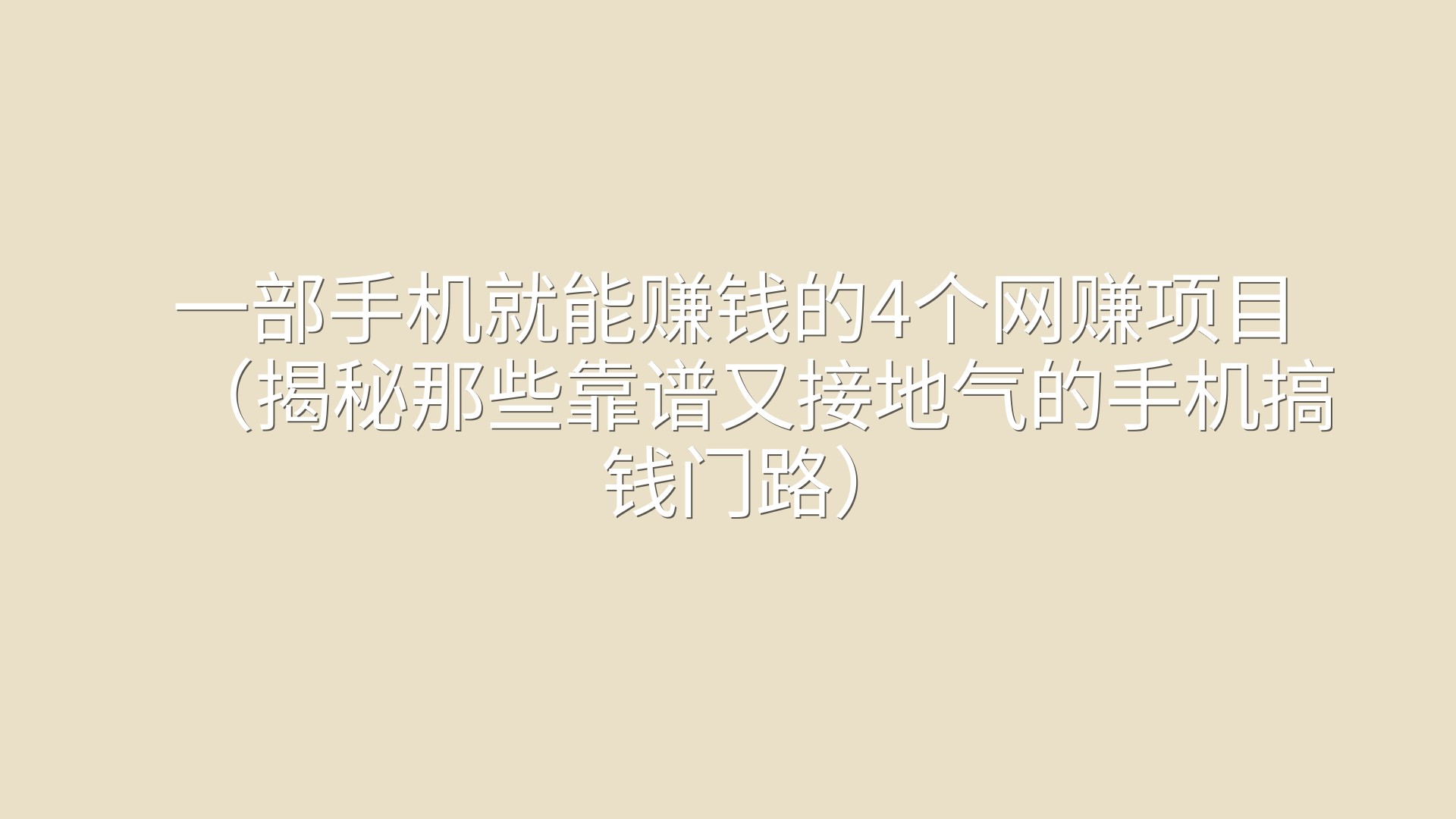 在这个出门可以不带钱包,但绝不能不带手机的时代,你有没有想过,手里这个“万能砖头”除了刷视频、点外卖、聊天,还能帮你搞点零花钱甚至更多?答案是肯定的!网赚项目五花八门,但坑也多得像路上的石子。今天,咱们不聊那些“日入过万”的浮夸神话,就接地气地盘一盘,普通人用一部手机就能上手、相对靠谱的4个赚钱门路。它们或许不能让你一夜暴富,但踏实操作,赚个奶茶钱、饭钱,甚至积累成一份不错的副业收入,完全有可能。