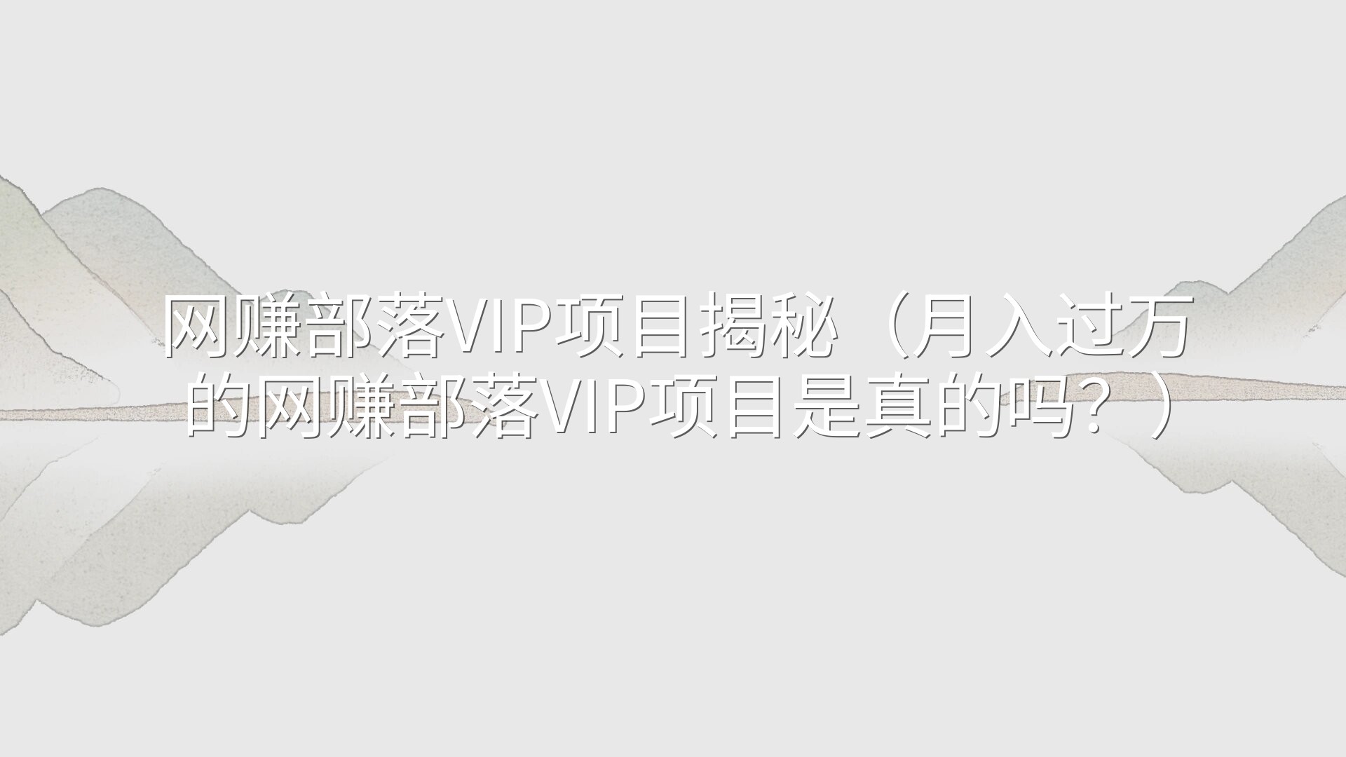 在“搞钱”成为全民口头禅的今天,各种网赚项目层出不穷,让人眼花缭乱。其中,“网赚部落VIP项目”这个名字,就像江湖中的一个传说,时不时在各大论坛和社群里激起一阵涟漪。有人说它是通往财富自由的捷径,有人则嗤之以鼻,认为不过是又一个收割韭菜的套路。今天,咱们就抛开滤镜,用接地气的大白话,扒一扒这个神秘的“网赚部落VIP项目”到底是个啥,值不值得你掏腰包。