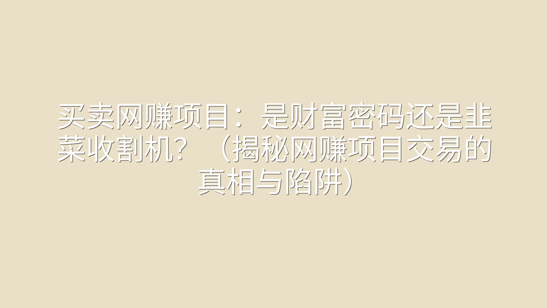在“搞钱”成为全民信仰的今天,“买卖网赚项目”这个江湖,正吸引着无数渴望一夜暴富或寻求副业突破的普通人。一边是卖家描绘的“日入过千、躺赚管道”的诱人蓝图,另一边是买家掏空钱包后面对的“教程过时、无法落地”的冰冷现实。这个市场就像一座神秘的金矿,有人真的挖到了金子,但更多人只是花钱买了一把生锈的铲子,还附赠了一本看不懂的藏宝图。今天,咱们就扒开这层神秘面纱,看看买卖网赚项目,到底是通往财务自由的捷径,还是精心包装的智商税现场。